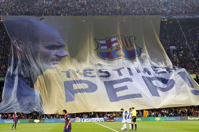 O oră mai tîrziu, cînd stadionul era gol, Pep a ieşit pe gazon. El, alături de Cristina, soţia sa, şi de cei trei copii: Maria, Marius şi Valentina. Un moment splendid. Adevărata despărţire. În liniştea arenei iubite.