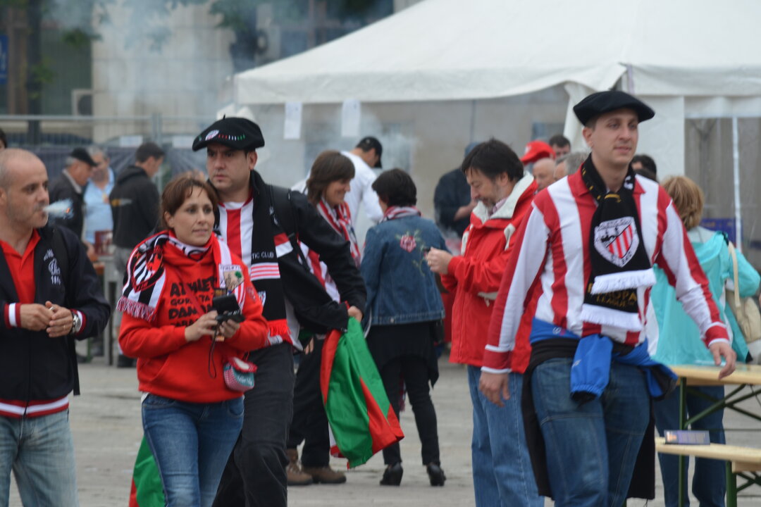Deşi vremea nu este favorabilă, peste 500 de fani ai celor de la Athletic Bilbao s-au strîns deja în Piaţa Constituţiei, acolo unde este amenajat fanzone-ul formaţiei.