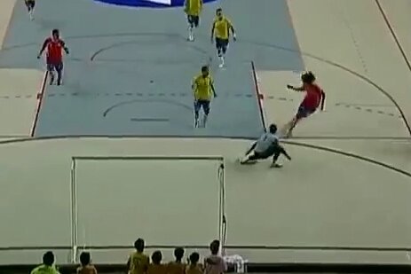 Una dintre cele mai uluitoare execuţii tocmai s-a petrecut la meciul de fotbal în sală dintre Brazilia şi Costa Rica. Protagonist a fost jucătorul oaspeţilor, Diego Zuniga. Acesta a făcut o recuperare, a pătruns şi a trimis în plasă după ce l-a păcălit pe portarul advers printr-un dribling foarte rar văzut.