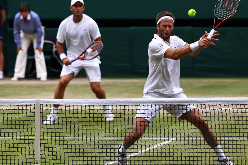 Partida a început marţi, sub nori negri, după o ploaie nervoasă. Robert şi Horia au aşteptat cîteva minute pînă să pornească jocul pentru că se aluneca îngrozitor pe iarbă. Un set rapid, plin de siguranţă şi de realizări pentru perechea româno-suedeză. 28 de minute. Atît le-a dat răgăz cerul, iar apoi a început din nou să plouă. Meciul nu s-a mai reluat marţi, iar suedezul şi românul au adormit cu un set avantaj. S-au trezit devreme pentru că partida s-a reluat ieri, pe Terenul 2, de la ora 11:30, ora locală.