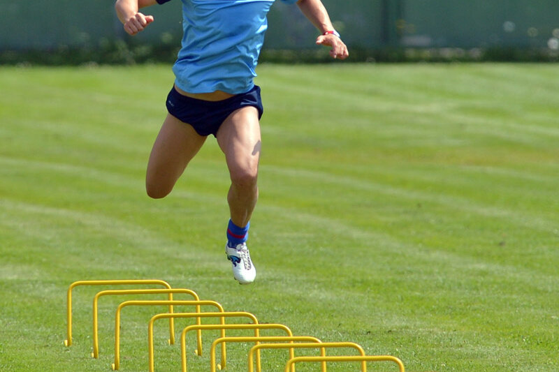 Prepeliţă sare într-un picior peste gărduleţe, apoi trece rapid printre jaloane flexibile şi aleargă ritmat în jurul a două copete. Latovlevici nu se plictiseşte nici el. Îşi aşază cinci mingi în faţa unei porţi, la cinci metri una de alta şi le loveşte pe rînd, să cadă direct în plasă. Primele patru lovituri îi ies, ultima se duce mult peste. Ţipă de nervi, dar şi distrat de joc.