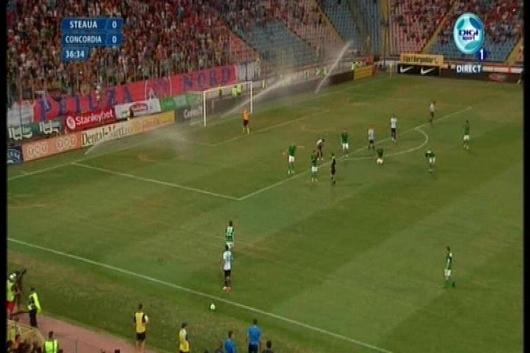 Episod cu totul neaşteptat petrecut în minutul 37 al partidei dintre Steaua şi Concordia Chiajna. În acel moment, imediat după o ciocnire între Florin Costea şi Florin Maxim în careul oaspeţilor, aspersoarele din spatele porţii apărate de Lepmets au pornit din senin şi au început să irige gazonul arenei din Ghencea. Cineva apăsase din greşeală pe ”butoanele” de pornire!