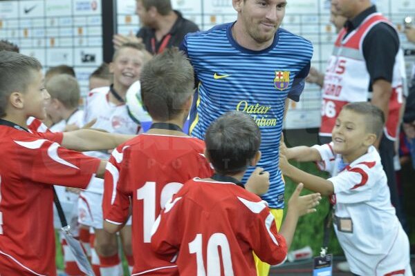 Copiii au fost cei mai încîntaţi de prezenţa spaniolilor pe Naţional Arena, aceştia sărutîndu-şi mîinile după ce au bătut palma cu Messi şi compania.