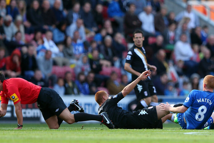 Lee Probert a fost lovit peste gambe şi de Watson (Wigan), şi de Sidwell (Fulham).