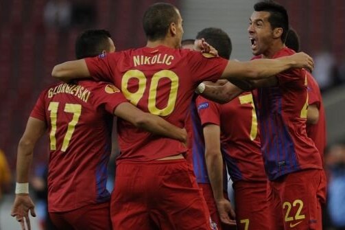 Actualul atacant al roş-albaştrilor, muntenegreanul Stefan Nikolici, a reuşit să puncteze şi el contra lui FC Copenhga după o fază de flipper. Mingea l-a lovit pe Nikolici în faţă, degajată de un fundaş danez, iar apoi balonul a sărit în alt fotbalist de la Copenhaga şi s-a dus în poartă.