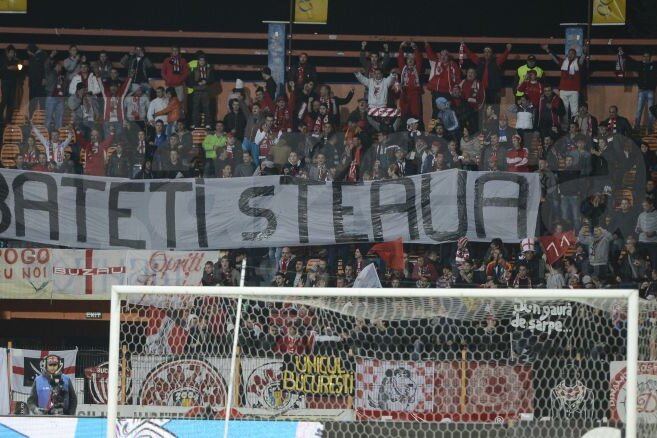Fanii dinamovişti prezenţi în tribunele de la Piatra-Neamţ au afişat un mesaj clar pentru Bonetti şi jucătorii roş-albilor: "Bateţi Steaua!"