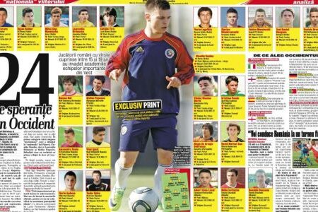 Tot în ziarul de marţi vă prezentăm tezaurul de peste hotare: 24 de tineri de 24 de karate, "şcoliţi" la academiile de fotbal importante din Vest. După ce Chiricheş sau Maxim, crescuţi la Benfica şi Espanyol, au ajuns jucători de bază la naţională, Gazeta vă spune povestea celor 24 de tineri care îşi fac junioratul la echipe din principalele campionate ale Europei şi au şanse să le calce pe urme.