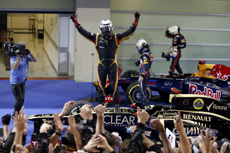 Aşa a început cursa de la Abu Dhabi, cu Alonso fericit că are şanse mari să refacă diferenţa de 13 puncte care-l separa de Vettel. Hamilton a plecat din pole-position. Britanicul a început bine, însă cel mai bine a făcut-o Raikkonen (Lotus), care a cîştigat două poziţii, ajungînd în spatele pilotului de la McLaren. Webber (Red Bull), cu sarcină clară de a-l opri cît mai mult pe Alonso, n-a rezistat decît jumătate de tur, spaniolul mergînd nebuneşte pentru un nou titlu mondial.
