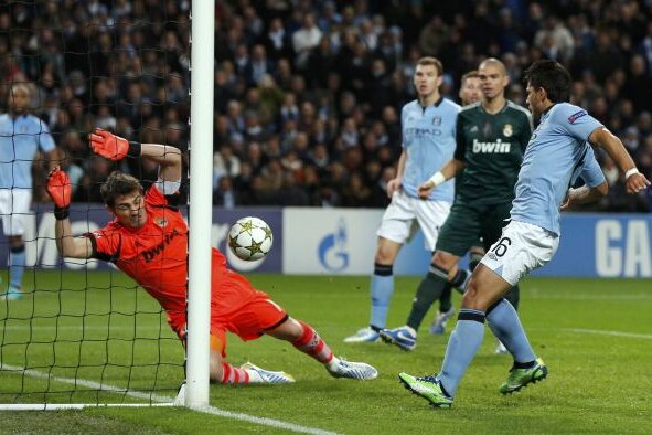 Mancini nu s-a resemnat. L-a aruncat în foc pe Tevez, însă Casillas a scos formidabil la şutul lui Aguero din careul mic. Iker n-a mai avut ce face însă la penaltyul dubios acordat de Rocchi la duelul Kun - Arbeloa, care a luat al doilea "galben", şi transformat tot de argentinian. Şi la 1-1, şi în zece oameni, Real a mers în "optimi", pentru că dincolo era 4-1. Degeaba au prelungit arbitrii italieni meciul cu 5 minute, prilejuind aplauzele ironice ale lui Mourinho.