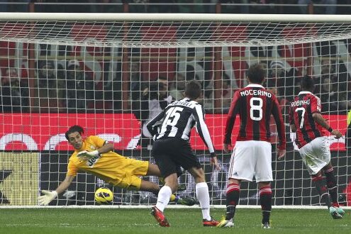 Aseară, 9 luni mai tîrziu, tot arbitrii au decis derbyul de pe "San Siro", dăruindu-i victoria Diavolului. În minutul 31, mingea lui Nocerino l-a lovit în coaste, sub braţ, pe juventinul Isla. Pe moment, Nicola Rizzoli n-a ştiut ce să dea, dar De Marco, arbitrul de poartă, i-a spus în cască: "Penalty!". Şi s-a dictat 11 metri. Robinho a transformat, 1-0, scor final.