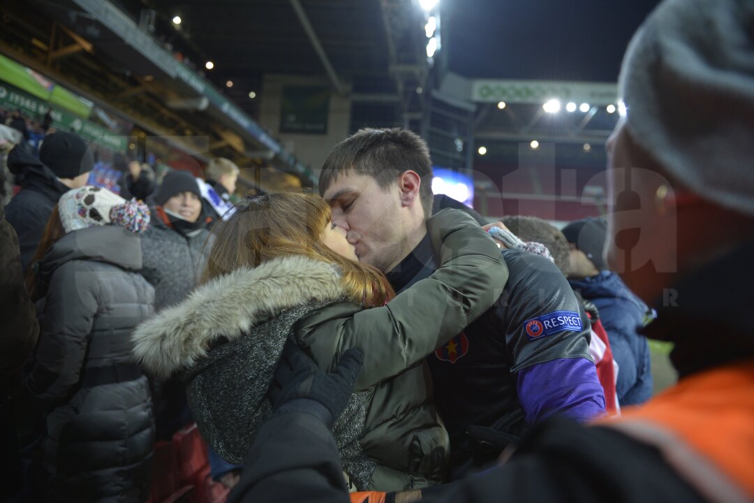 Bucuroşi după calificarea obţinută, steliştii s-au dus imediat în zona unde se aflau iubitele sau soţiile , care le-au stat alături în această deplasare şi au tremurat de frig în tribunele stadionului "Parken".