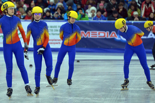 - Da! Să ştii că nu aveam speranţe de mai mult. Noi facem patinaj viteză, ne antrenăm pentru short track de doar patru luni. Sînt multe diferenţe! La viteză concurăm doar două concomitent. Aici e foarte aglomerat, ne înghiontim mereu. La aproape fiecare cursă e o cădere: cine alunecă ia după el încă doi-trei patru oameni! Iar regulile sînt stricte: cine calcă şi cu vîrful patinei în afara suprafeţei de concurs e descalificat.