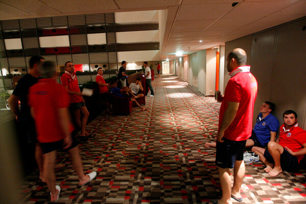 Acum, la mai puţin de 24 de ore de returul decisiv pentru calificarea în sferturile Europa League cu Chelsea, "roş-albaştrii" au fost din nou evacuaţi din hotel.