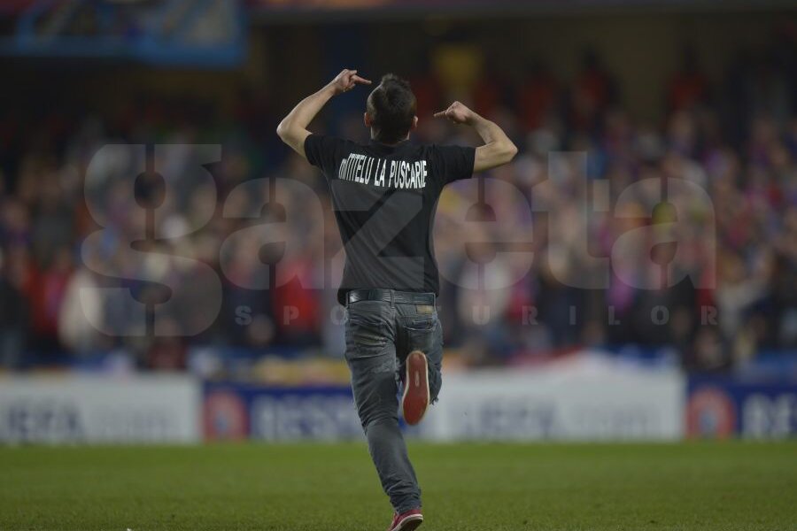 În minutul 18 al meciului Chelsea - Steaua, un suporter român a intrat pe teren şi a întrerupt partida cîteva secunde.