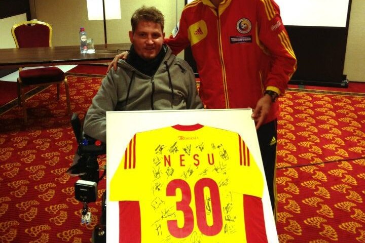 Jucătorii naţionalei i-au făcut o surpriză lui Mihai Neşu, căruia i-au oferit un tricou al naţionalei cu semnăturile tuturor tricolorilor.