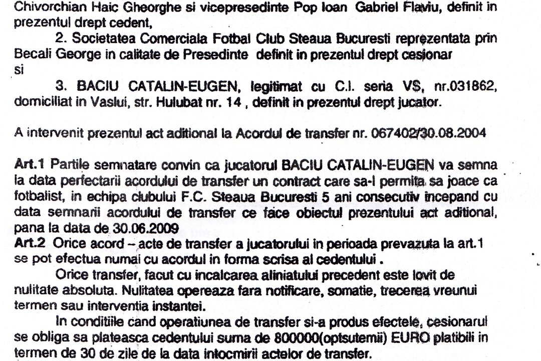 Vezi actul adiţional dintre FCM Bacău şi Steaua, chiar Gigi Becali semnînd pentru acesta!