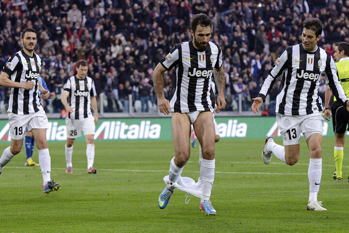 Vucinici a jucat rolul de "one man show" sîmbătă, cu Pescara (2-1). Muntenegreanul a fost singurul care l-a putut bate pe fenomenalul Pelizzoli, de două ori în 5 minute, şi Juventus s-a mai apropiat cu o etapă de păstrarea titlului. Mirko a sărbătorit, de fiecare dată, cu un număr de striptease. Şi-a scos şortul, pe care l-a fluturat ca pe un fular, a fugit la margine, încasînd cîteva palme de la Antonio Conte!