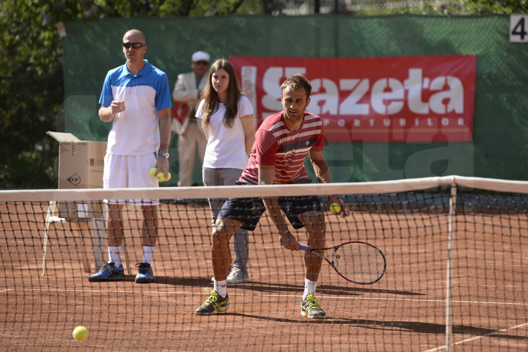 Marius Copil (locul 131 ATP) şi Victor Crivoi (locul 215 ATP) s-au antrenat timp de mai bine de o oră cu zecile de copii. Pentru cei mici, fiecare minge conta. Şi, deşi unii dintre ei nu erau cu mult mai înalţi decît fileul, nici unul nu s-a lăsat pînă nu a punctat, cel puţin la impresia artistică.