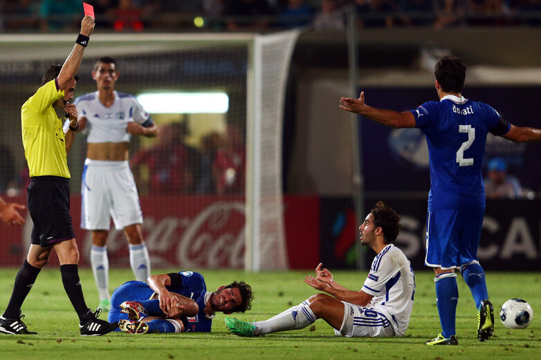 Golasa, care-l rupsese pe Insigne (scos cu targa!), a luat "roşu" după o intrare cu ambele picioare la Saponara. "A tolerat iniţial jocul dur al israelienilor, apoi a dictat o eliminare un pic severă. În rest, a controlat meciul fără probleme", scrie Gazzetta dello Sport, care i-a dat nota 6.