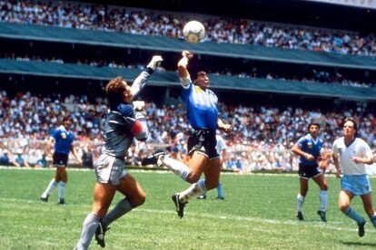 Primul gol al lui Maradona, din minutul 51, a provocat o adevărată furtună pe stadion. Reluările au arătat clar că argentinianul a înscris cu mînă şi l-a păcălit pe arbitrul tunisian Ali Bin Nasser, care a validat golul.