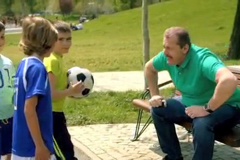 Fostul goalkeeper apare într-o reclamă în care trei copii apelează la el fiindcă nici unuia nu-i plăcea să joace portar.