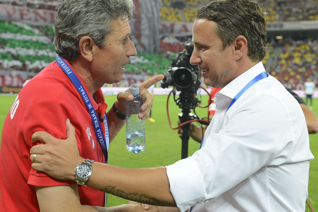 Laurenţiu Reghecampf şi Gigi Mulţescu au vorbit preţ de cîteva secunde înaintea startului meciului de ieri, după ce în ultimele zile între cei doi tehnicieni a fost un mic scandal.