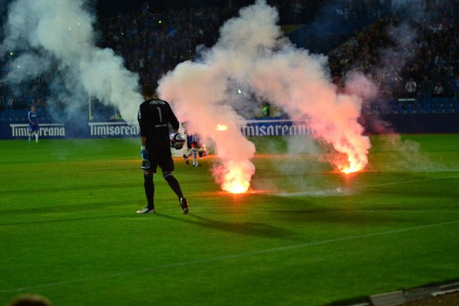 - torţe aruncate în teren + injurii la adresa şefilor din fotbal = 90.000 lei amendă şi 2 etape suspendare