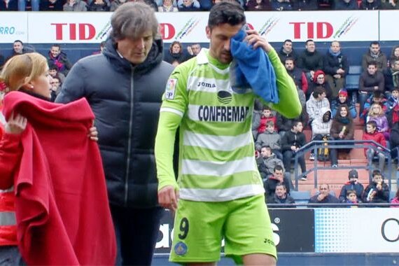 Accidentul s-a petrecut, de fapt, în minutul 24, la un duel aerian în careul gazdelor. Fundaşul Arribas l-a lovit pe atacantul român în arcada stîngă, provocîndu-i o rană deschisă. Medicii i-au acordat primele îngrijiri pe gazon, după care l-au însoţit la margine, unde au reuşit să-i oprească şi sîngerarea.