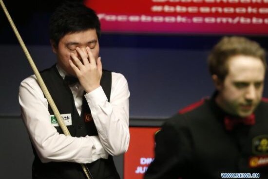 Ding a închis prima sesiune a meciului cu Wasley la 6-3, dar lucrurile au luat o turnură neaşteptată într-a doua parte, atunci cînd englezul a redus din diferenţă. Meciul s-a întrerupt la 9-8 pentru chinez, dar, imediat după întoarcerea de la cabine, bomba a fost detonată de numărul 75 mondial, care a cîştigat ultimele două frameuri, realizînd şi un break de 103.