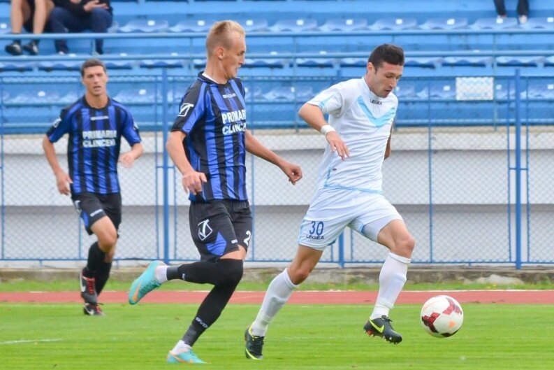 Partida a fost destul de echilibrată în prima jumătate de oră, însă pe finalul repriezi, elevii lui Marius Lăcătuş s-au dezlănţuit. Pălimaru în minutul 37 cu o lovitură de cap şi Liviu Mihai cu un şut din afara careului în minutul 39 au stabilit scorul pauzei, 2-0.