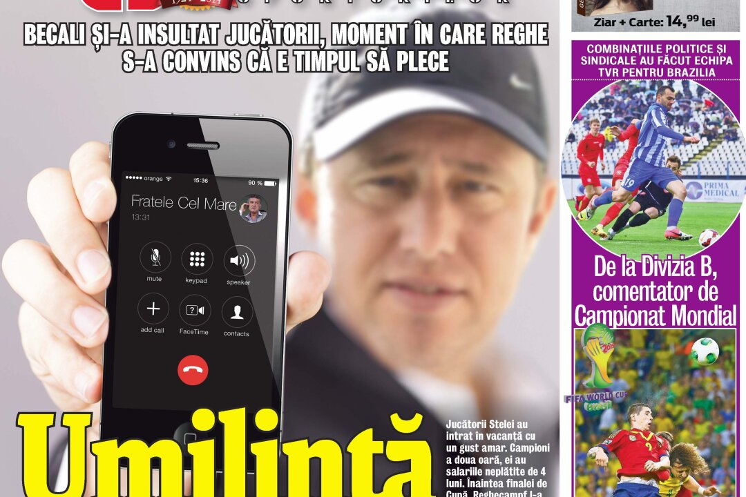 Gazeta de ieri a dezvăluit faptul că Reghecampf l-a pus pe Gigi în situaţia de a le comunica direct jucătorilor decizia de a nu-i premia pentru eventuala cîştigare a Cupei, punîndu-l pe speaker în timpul unei convorbiri telefonice.