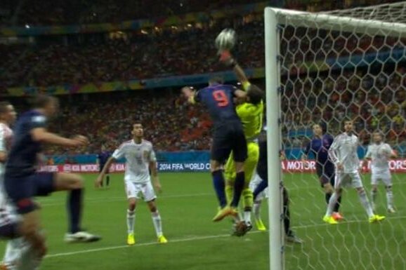 Van Persie l-a lovit cu cotul pe portar în săritură şi faultul i-a permis lui De Vrij să reia mingea în plasă. Arbitrul n-a văzut incidentul şi a validat golul prin care Olanda conducea cu 3-1.