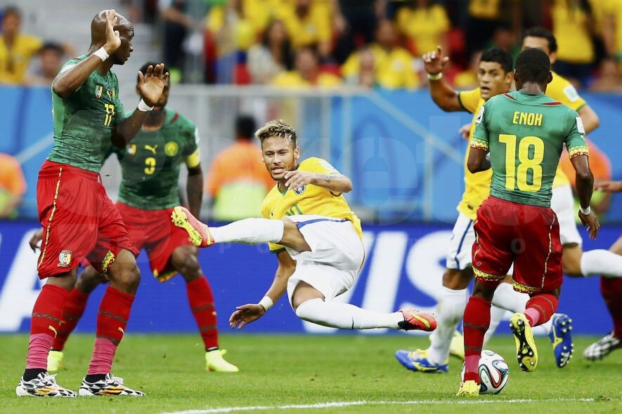Neymar a înscris al 100-lea gol al acestui turneu final la partida o sută pentru Brazilia la CM: tot el a reuşit dubla, Fred şi Fernandinho au închis tabela, 4-1