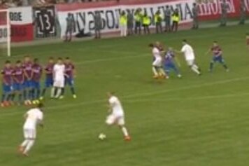 Vedeta kazahilor a tras direct în tribune, deşi distanţa faţă de poartă era perfectă. Peste fix 15 minute Steaua avea să deschidă scorul după un gol al lui Keşeru.