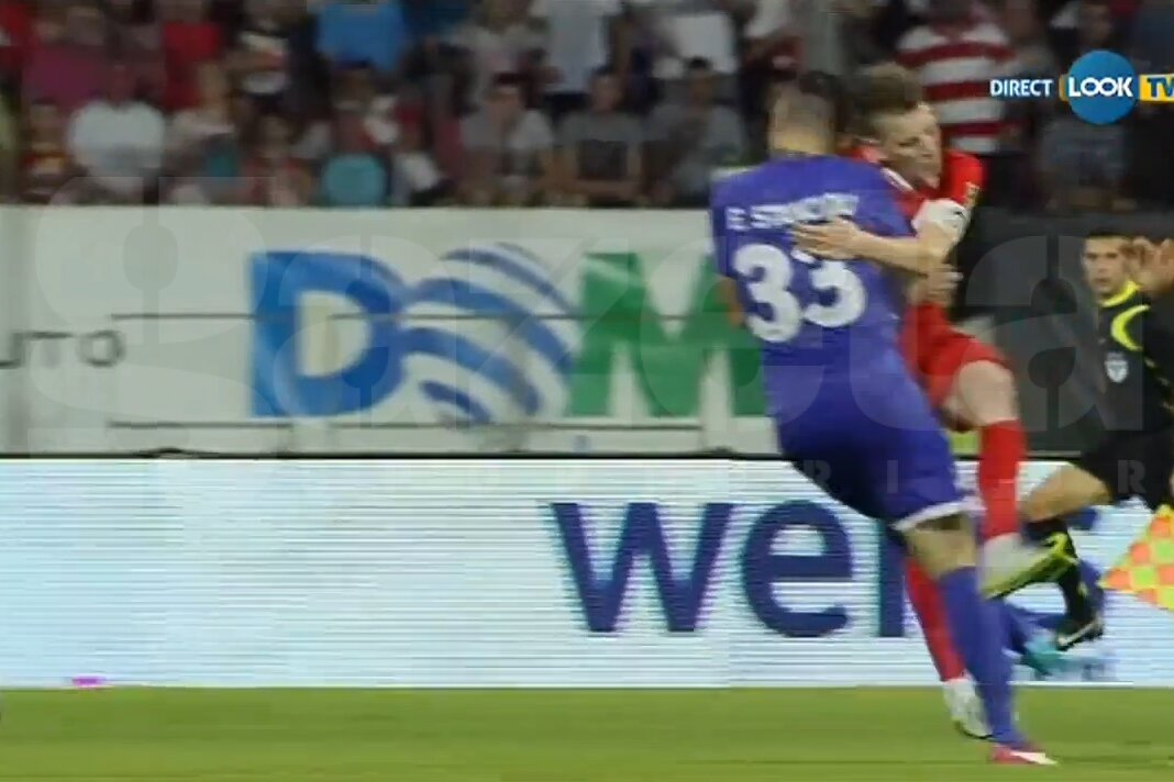 ”Centralul” a acordat numai cartonaş galben, în ciuda protestelor jucătorilor dinamovişti.