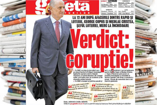 Pe 6 august 2002 a apărut pentru prima dată în paginile ziarului ProSport investigaţia jurnalistică derulată de echipa care azi face Gazeta Sporturilor. Afacerile dintre George Copos şi Loteria Română, unele dintre ele incluzînd şi clubul Rapid, i-au adus acestuia astăzi o nouă condamnare, 4 ani de închisoare cu executare.