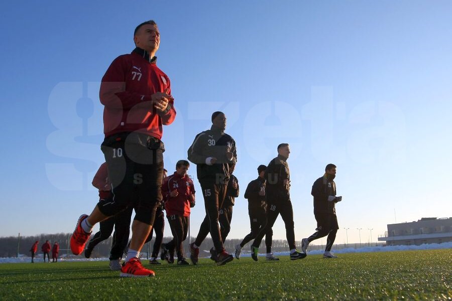 Primul antrenament oficial din 2015 s-a ţinut la Buftea, terenurile de la ProRapid fiind impracticabile. Din cauza numărului redus de jucători, Cristi Pustai nu s-a implicat în şedinţa de pregătire, fotbaliştii fiind coordonaţi de preparatorul fizic. Antrenamentul a constat din reprize de stretching şi alergări uşoare.