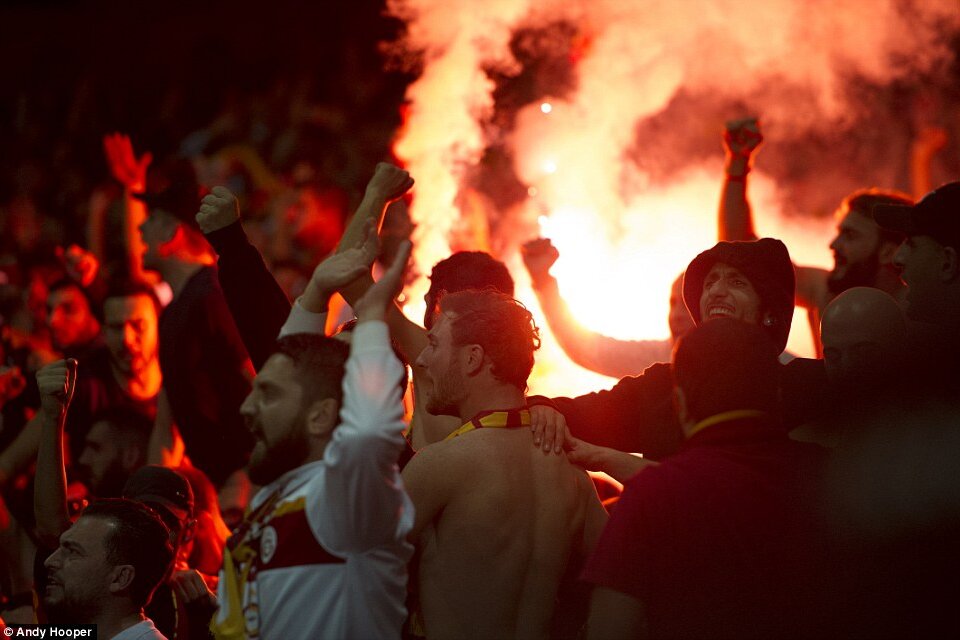 Suporterii Galatei, într-o deplasare cu Arsenal. Sursa foto: dailymail.co.uk