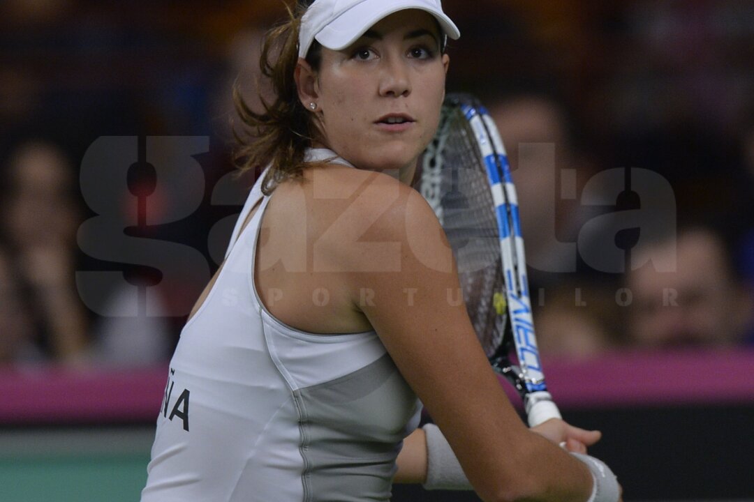 După ce Simona Halep a învins-o pe Silvia Soler-Espinosa, Garbine Muguruza, vedeta echipei Spaniei, a cîştigat meciul cu Irina Begu şi a egalat situaţia după prima zi.