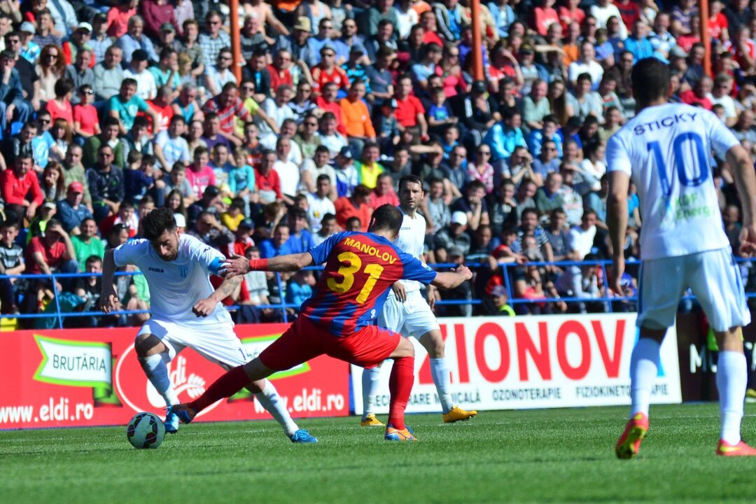 Și ultima fază a meciului a fost una controversată. Feussi și Herghelegiu s-au duelat în careul de 16 metri, iar fundașul mureșean a ridicat piciorul prea sus, incomodîndu-l pe atacantul oltean.
