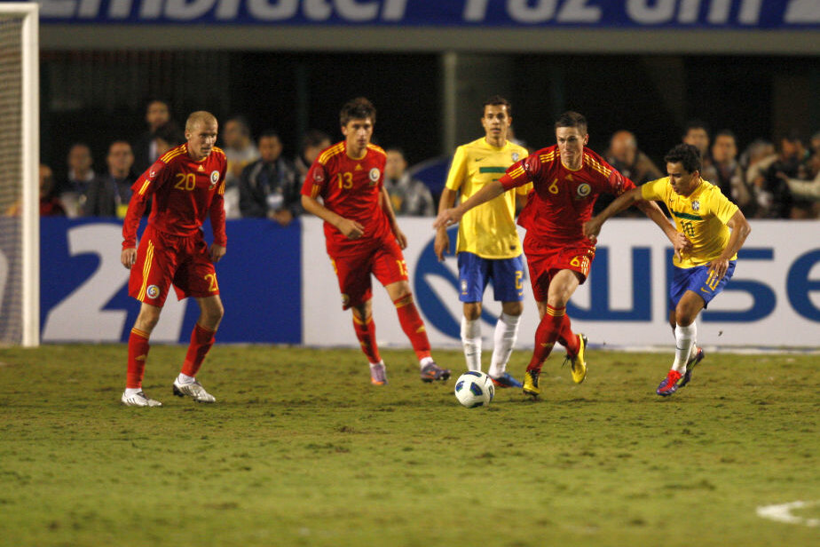 Giurgiu a debutat la echipa naţională a României într-un amical cu Brazilia, scor 0-1.