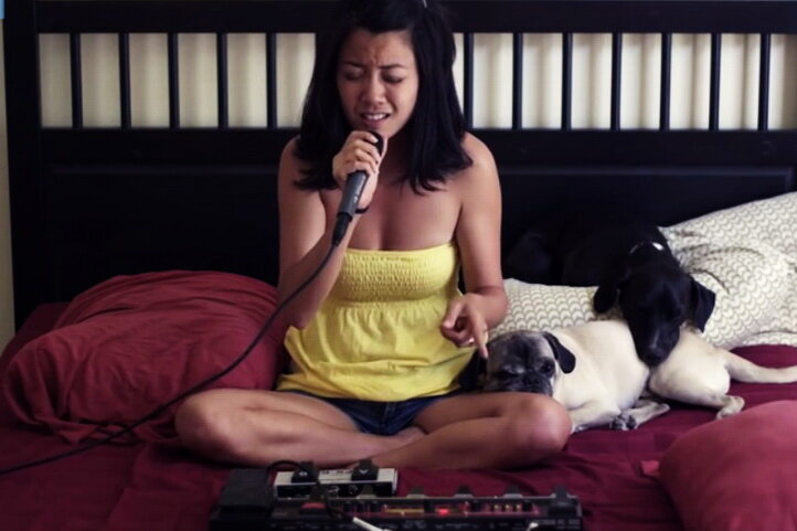 Fata aceasta vrea să înceapă o carieră muzicală. Cu o metodă mai rar întâlnită, ea face cât o întreagă trupă.