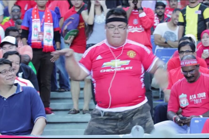 Printre zecile de mii de tricouri ale suporterilor lui Liverpool și-a făcut apariția și un asiatic îmbrăcat în tricoul lui Manchester United. Acesta n-a stat deloc liniștit și a creat spectacol, dansînd aproximativ un minut, după care un alt fan l-a calmat.