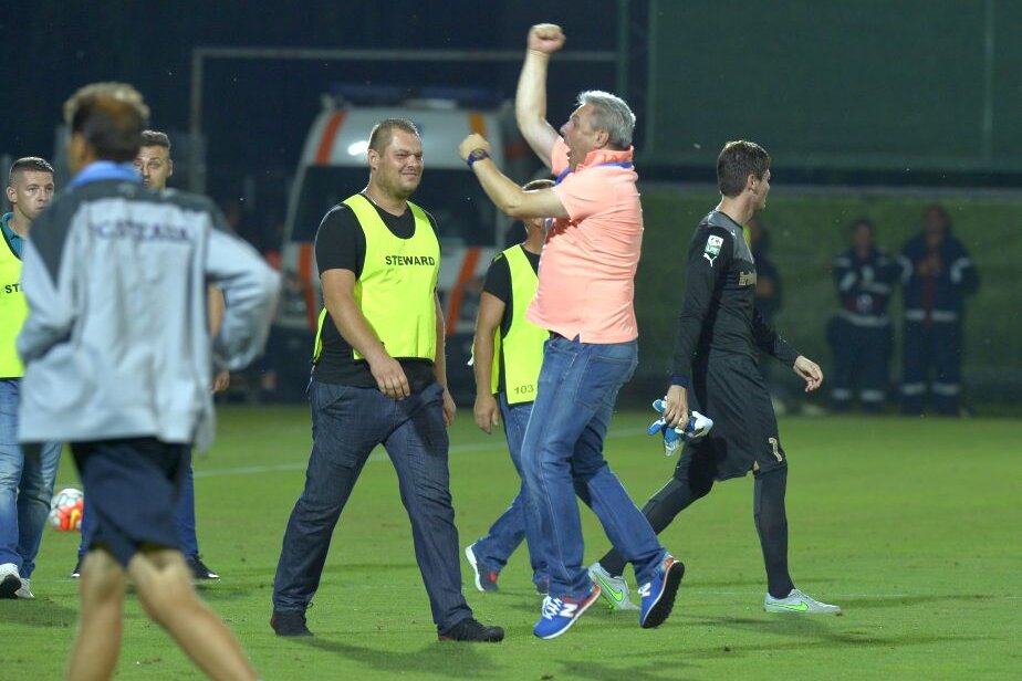 Asta s-a întîmplat și la finalul jocului cu Steaua cîștigat de formația giurgiuveană cu 2-0. Antrenorul Astrei nu s-a putut stăpîni și pe lîngă bucuria dusă la extrem a început să le arate și semne obscene celor care încurajau Steaua.