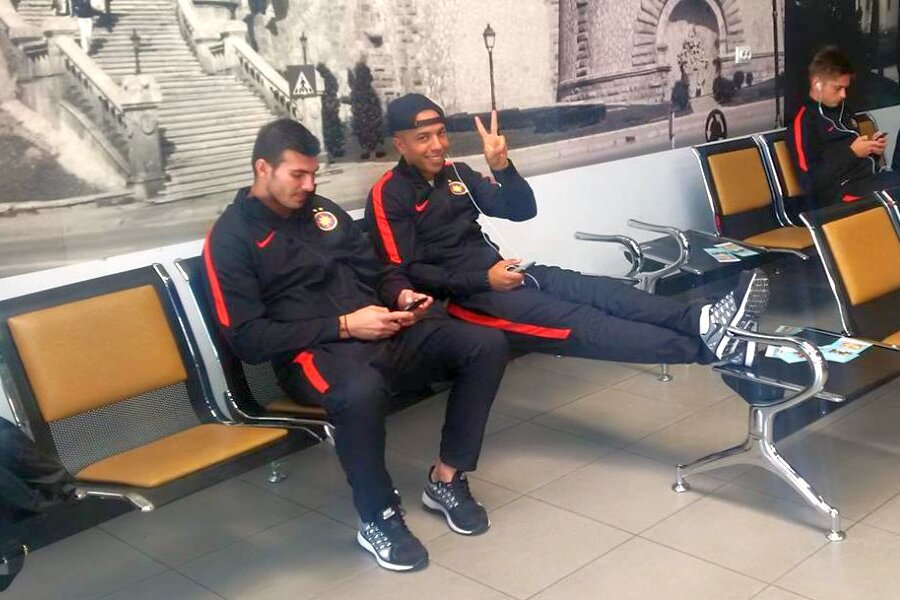 Roș-albaștrii au ajuns la Iași unde vor disputa în această seară partida cu CSMS, însă pe aeroport n-au fost așteptați decît de o polițistă care a primit un autograf de la Mirel Rădoi.