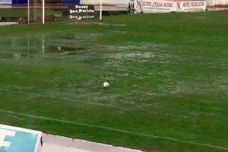 Ploile din Spania au inundat terenul, iată cîteva imagini cu arbitrul care încerca să vadă dacă se poate juca în etapa a noua din cea de-a treia divizie. Rezultatul? Negativ.