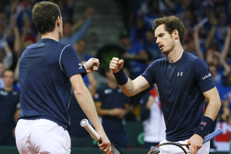 Andy şi Jamie Murray au trecut ieri de Steve Darcis şi David Goffin cu 6-4, 3-6, 6-3, 6-2 în două ore şi patruzeci şi nouă de minute.
