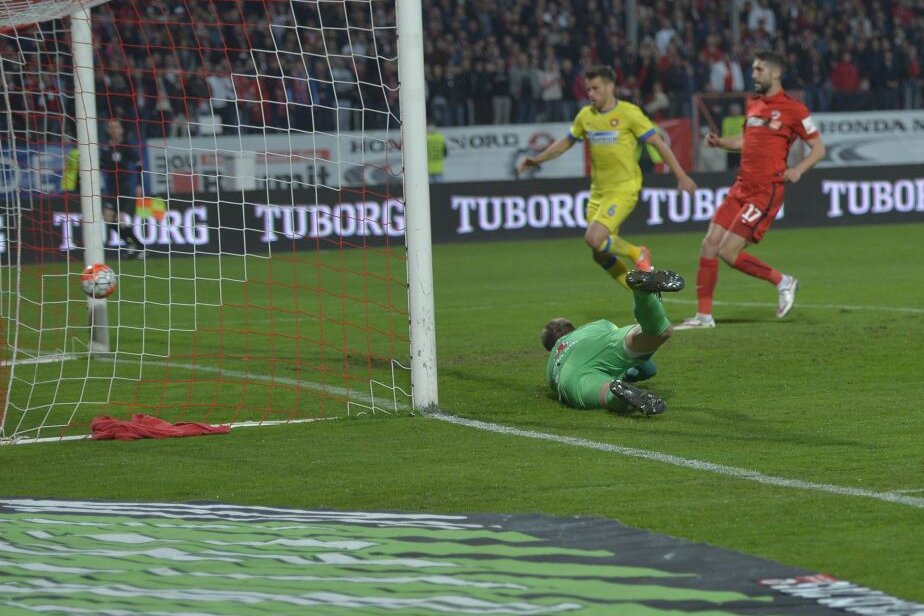 ”Roș-albaștrii” au deschis scorul încă din minutul 10, după ce Hamroun a scăpat singur cu Cerniauskas și l-a învins pe portar cu un șut pe jos la colțul lung.
