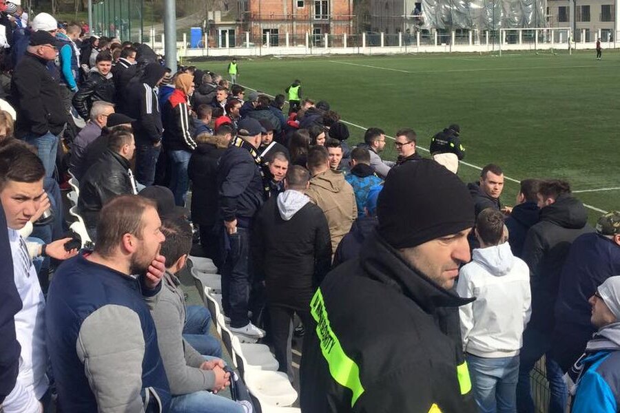 Şi pentru că tribuna de lângă "sintetic" n-a fost încăpătoare, oamenii s-au înghesuit inclusiv într-un parc din apropiere, dar şi în spatele uneia dintre porţi! Unde a stat galeria maramureşeană. În total, la meci au asistat peste 500 de persoane.