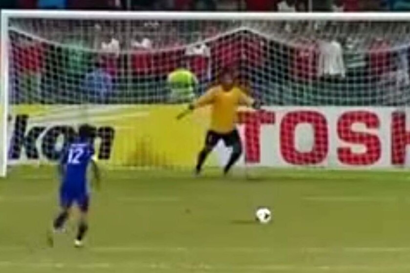 Ashad Ali Adubarey, jucător în naționala din Insulele Maldive, a căzut înainte de a executa o lovitură de pedeapsă, pentru ca mai apoi să se ridice și să înscrie în poarta Afghanistanului.